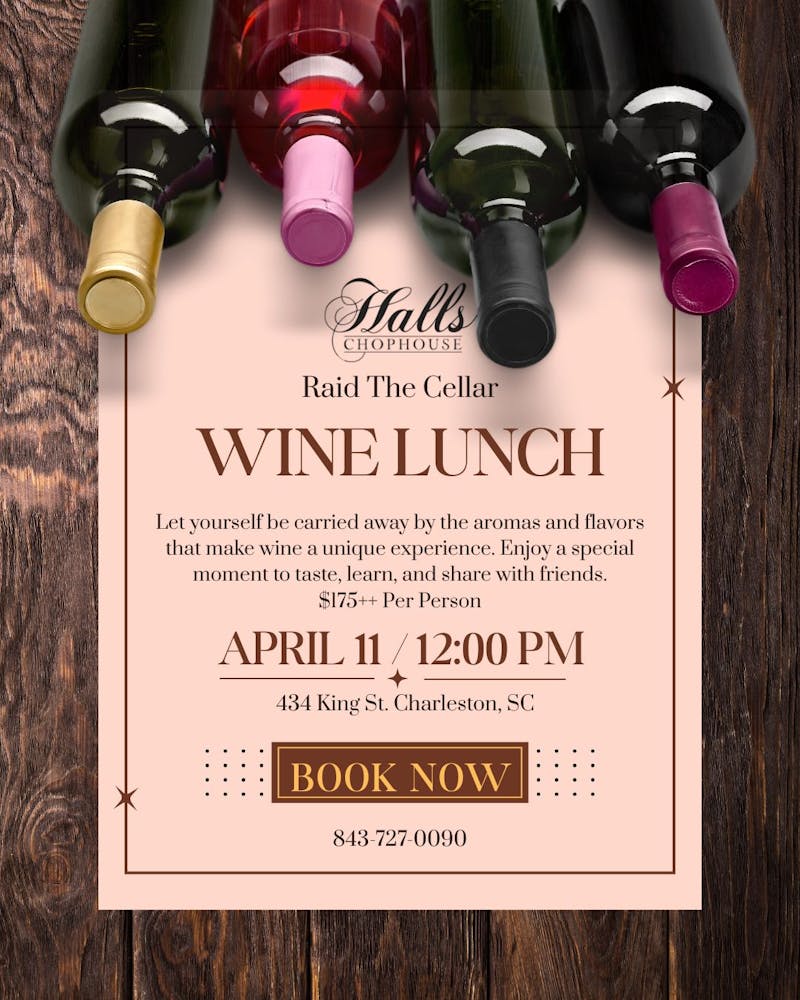 Come sip, savor, and explore! On April 11th, step inside Halls Chophouse's private wine cellar for an afternoon of wine exploration. For this behind-the-scenes event, Executive Chef Adam Jakins and Sommelier Baylee Houser will lead you on a curated adventure, trying some of Halls’ most coveted bottles paired with small bites from the lauded culinary team.