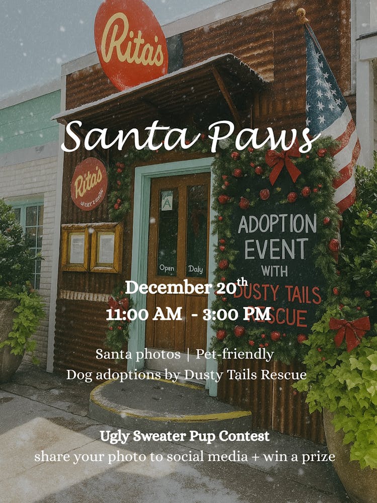 Check Out Rita's Puppy MenuDecember 20, 2025 11:00 AM until December 20, 2025 03:00 PM